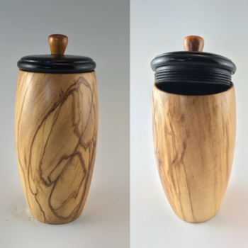 Maui Olive wood box, hand chased threads